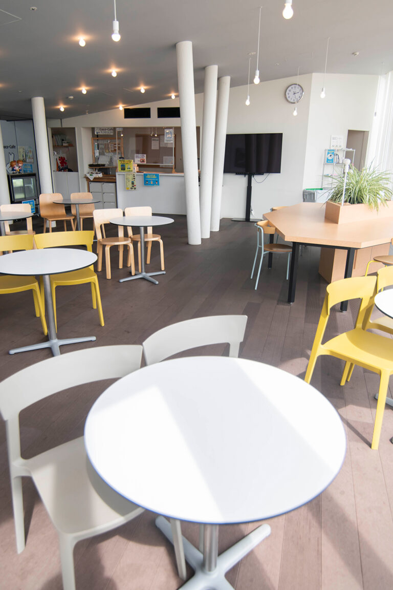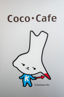 神栖防災アリーナ内にある休憩スペース。ココカフェの名物ピーマンソフトがおすすめです。神栖市はピーマン生産量No.1です。